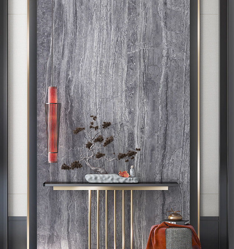 波斯海浪灰取材木化石,經過漫長歲月形成的自然產物木化石,具有永恒、長壽、永生的靈性。波斯海浪灰朦朧簡約的線條,用波斯文化基因中獨有的顏色呈現,演繹奇瑰的異域風情。海浪般波動的紋理,仿佛置身于浩瀚海洋,大氣恢宏,胸懷四海,使空間具有強大精純的能量,極具奇幻魅力。