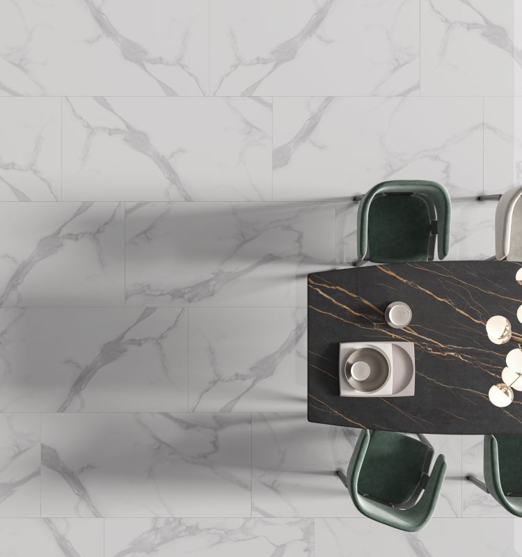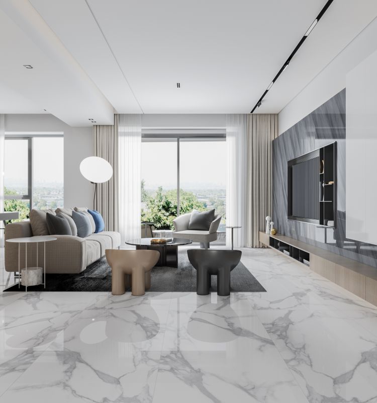該產品設計靈感取自于意大利名貴石材魚肚白的紋理,詮釋了大理石瓷磚之美,賦予空間尊貴的氣質,適合雅致奢華、現代輕奢、新中式等風格。