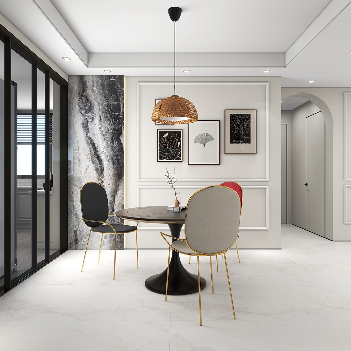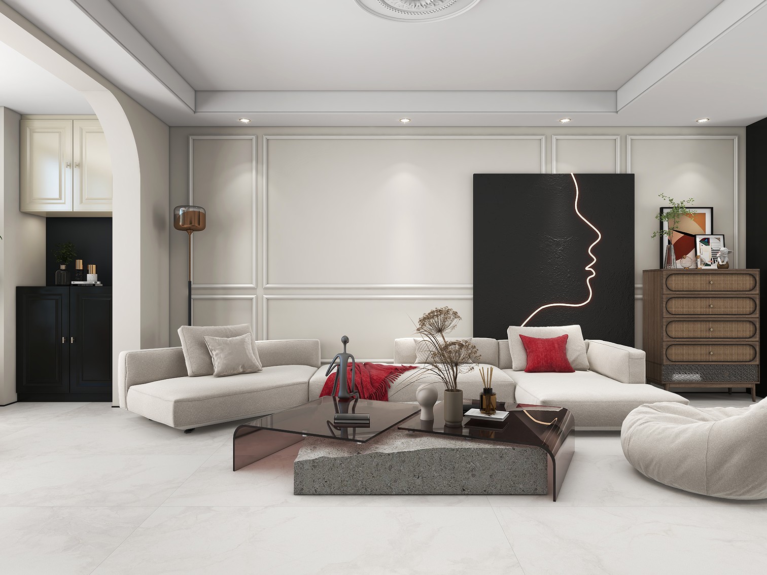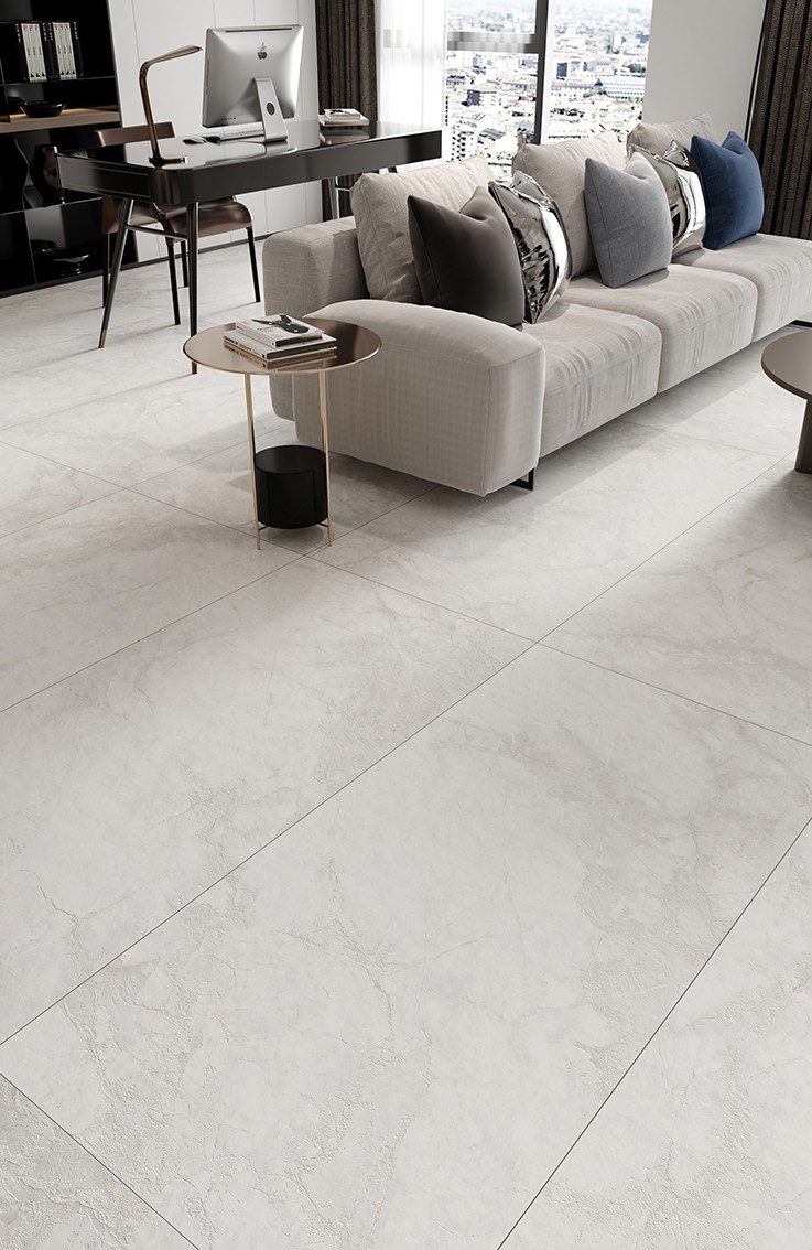 泰山為五岳之首,被譽為“五岳獨尊”,「云卷」以泰山“云瀑”為設計靈感,形象地凝練云海在泰山的九天銀河傾瀉而下的動態之美,將其投射瓷磚紋理中,以云卷云舒的形態,營造出極富流動感的形象在瓷磚紋理上。天寬憑云舒,宇闊任云卷,帶來輕盈純凈、自由隨性的空間感受。