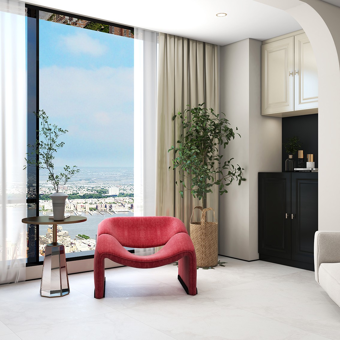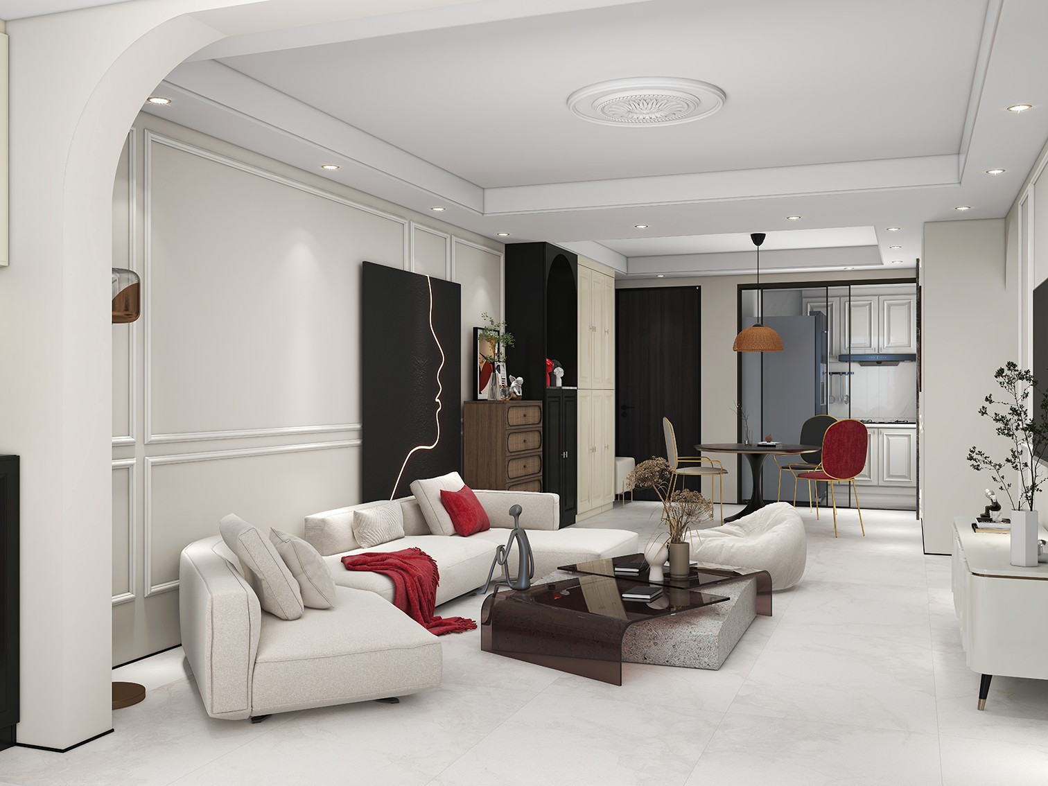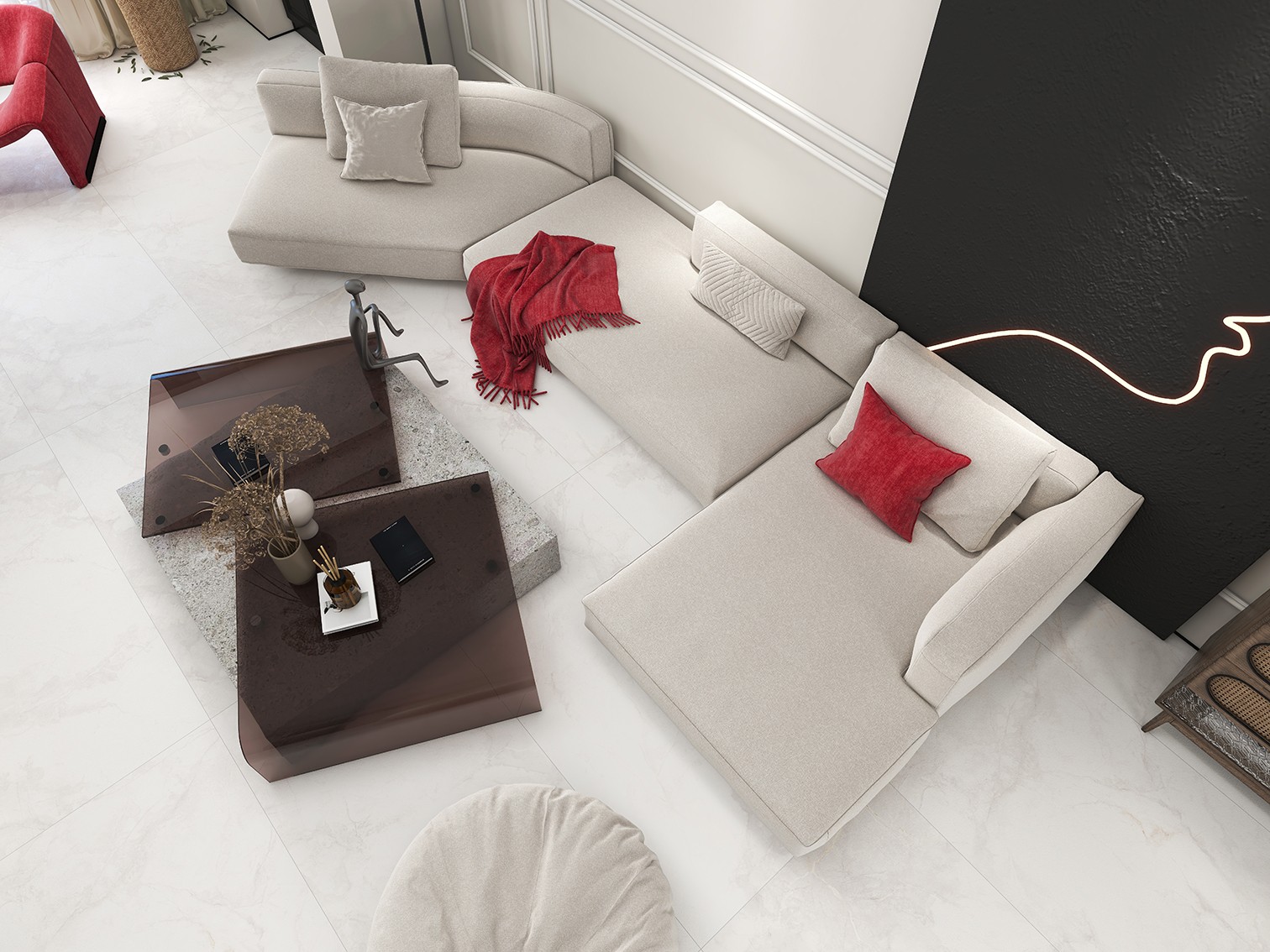 泰山為五岳之首,被譽為“五岳獨尊”,「云卷」以泰山“云瀑”為設計靈感,形象地凝練云海在泰山的九天銀河傾瀉而下的動態之美,將其投射瓷磚紋理中,以云卷云舒的形態,營造出極富流動感的形象在瓷磚紋理上。天寬憑云舒,宇闊任云卷,帶來輕盈純凈、自由隨性的空間感受。