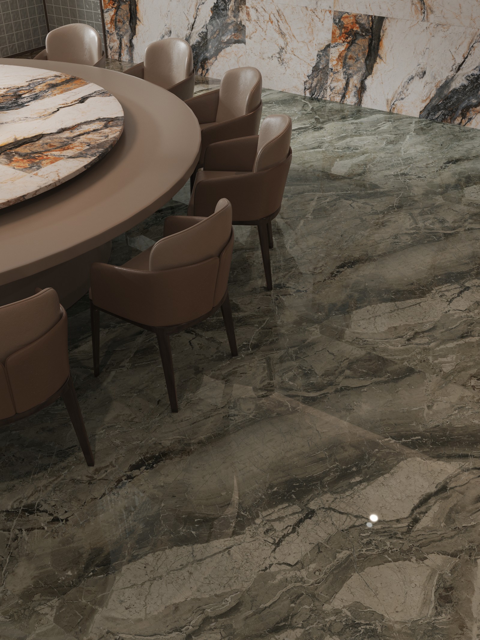 設(shè)計靈感來源于烏尤尼鹽沼的云海,當(dāng) 陽光灑在這片無垠的鏡面上,云朵在天 空與地面之間自由游走,形成一幅流動 的畫卷。我們捕捉了這一瞬的寧靜與和 諧,將云海的輕盈與天空的深邃融入瓷 磚設(shè)計。每一片瓷磚都如同天空之鏡, 反射出室內(nèi)的光影,為您的空間帶來一 份寧靜與深遠(yuǎn).